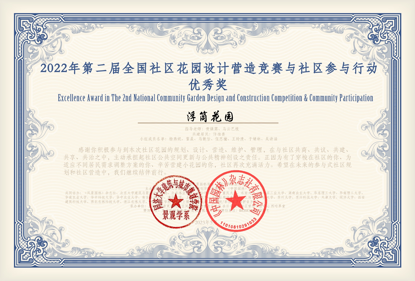 2023--恭喜燕妮,雷晨,玲漫 ,靓怡等同学获全国社区花园设计营造竞赛优秀奖。