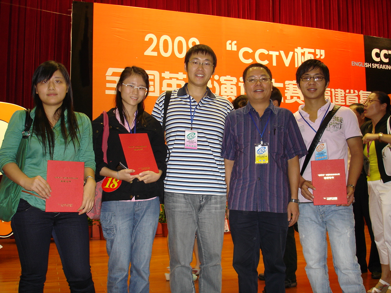 出任2009年“CCTV杯”全国大学生英语演讲赛评委并与华大选手合影