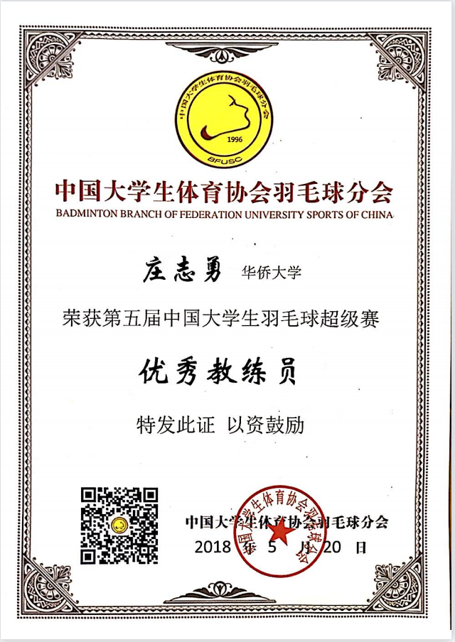第五届中国大学生羽毛球超级赛优秀教练员