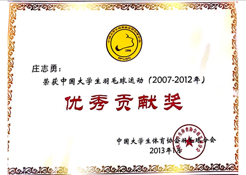 中国大学生羽毛球运动优秀贡献奖