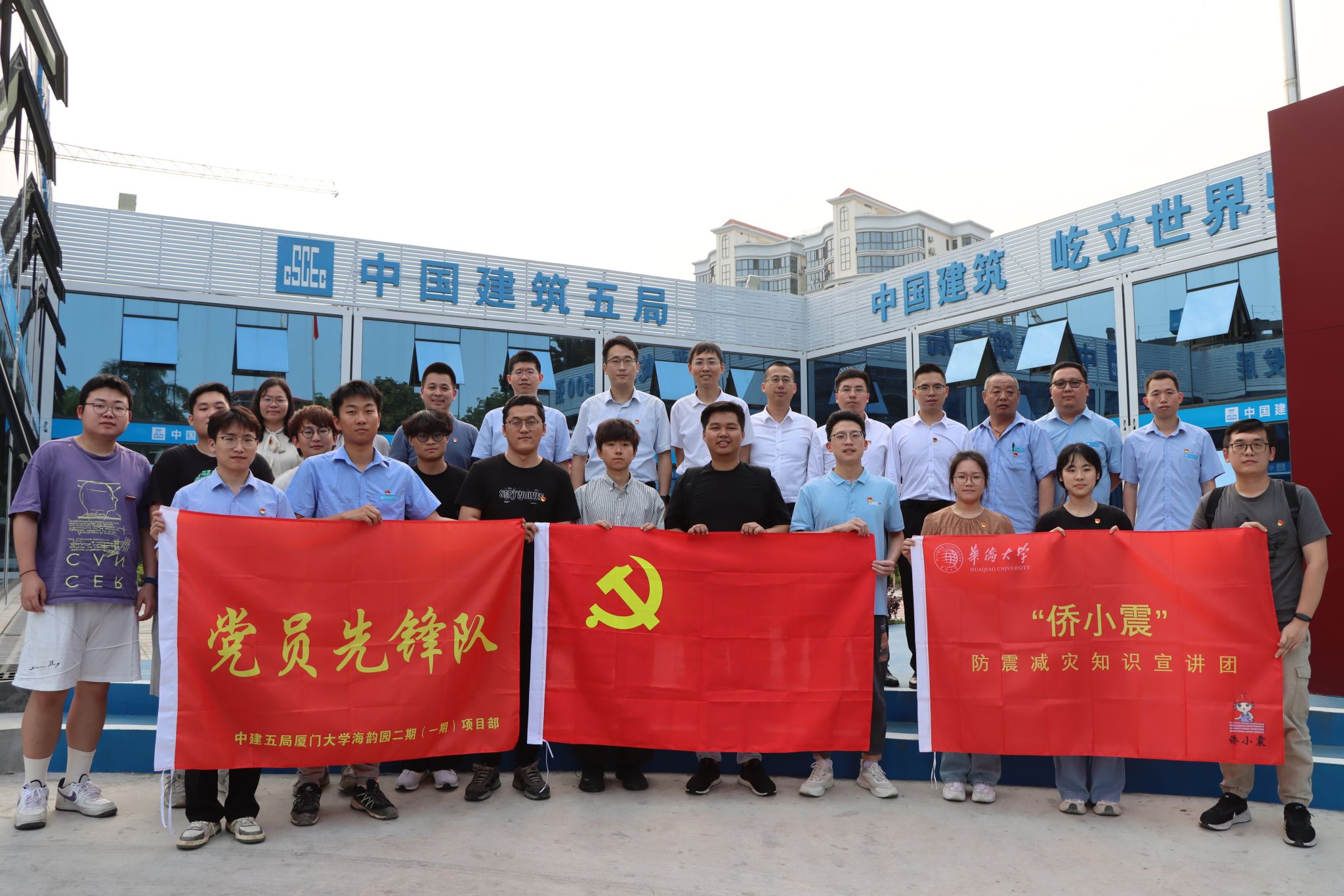4月15日,现代组合结构和抗震防灾创新团队党支部(以下简称“创新团队党支部”)参访厦门大学海韵园二期项目,并与中建五局海西投资建设有限公司厦门大学项目党支部(以下简称“厦大项目党支部”)进行党建交流。“侨小震”防灾减灾研究生创新团队党支部一同参加。