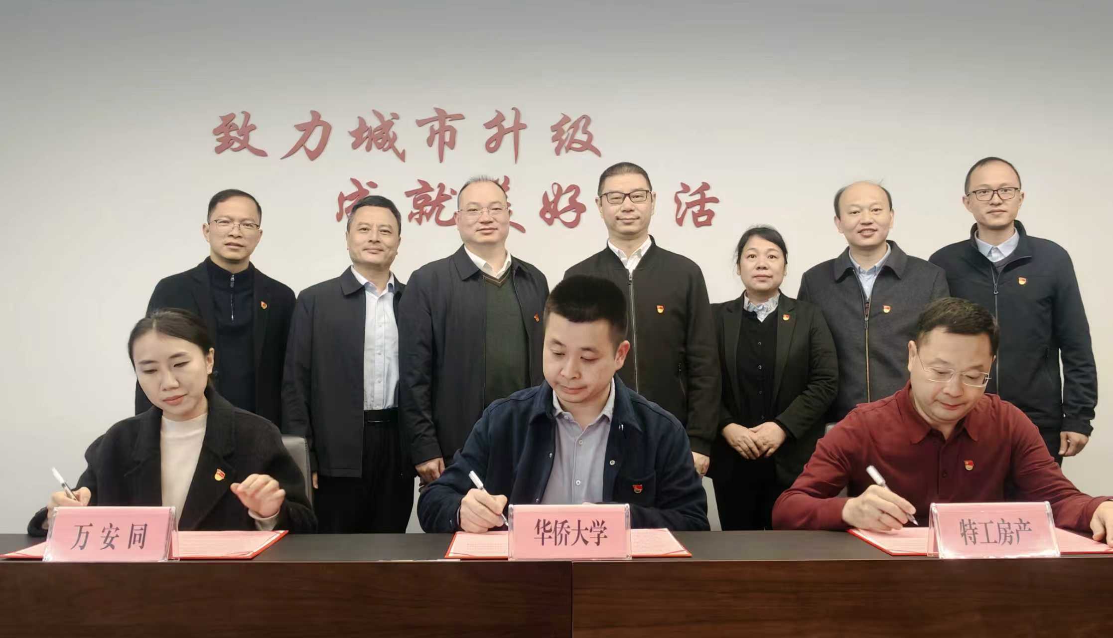 2026年1月30日上午,华侨大学土木工程学院现代组合结构与抗震防灾创新团队党支部(以下简称“党支部”)与厦门安控地产集团有限公司旗下特工房产党支部、万安同党支部,在安控地产集团总部举行党建合作共建签约仪式,正式确立双方在组织共建、人才共育、科研共创等方面的合作框架。华侨大学党委常委、副校长黄辉,土木工程学院党委书记陈雪琴、院长李海锋等校院领导,以及安居控股集团党委委员、副总经理宋剑,安控地产集团党委书记、董事长倪鸿等企业代表共同见证此次签约。