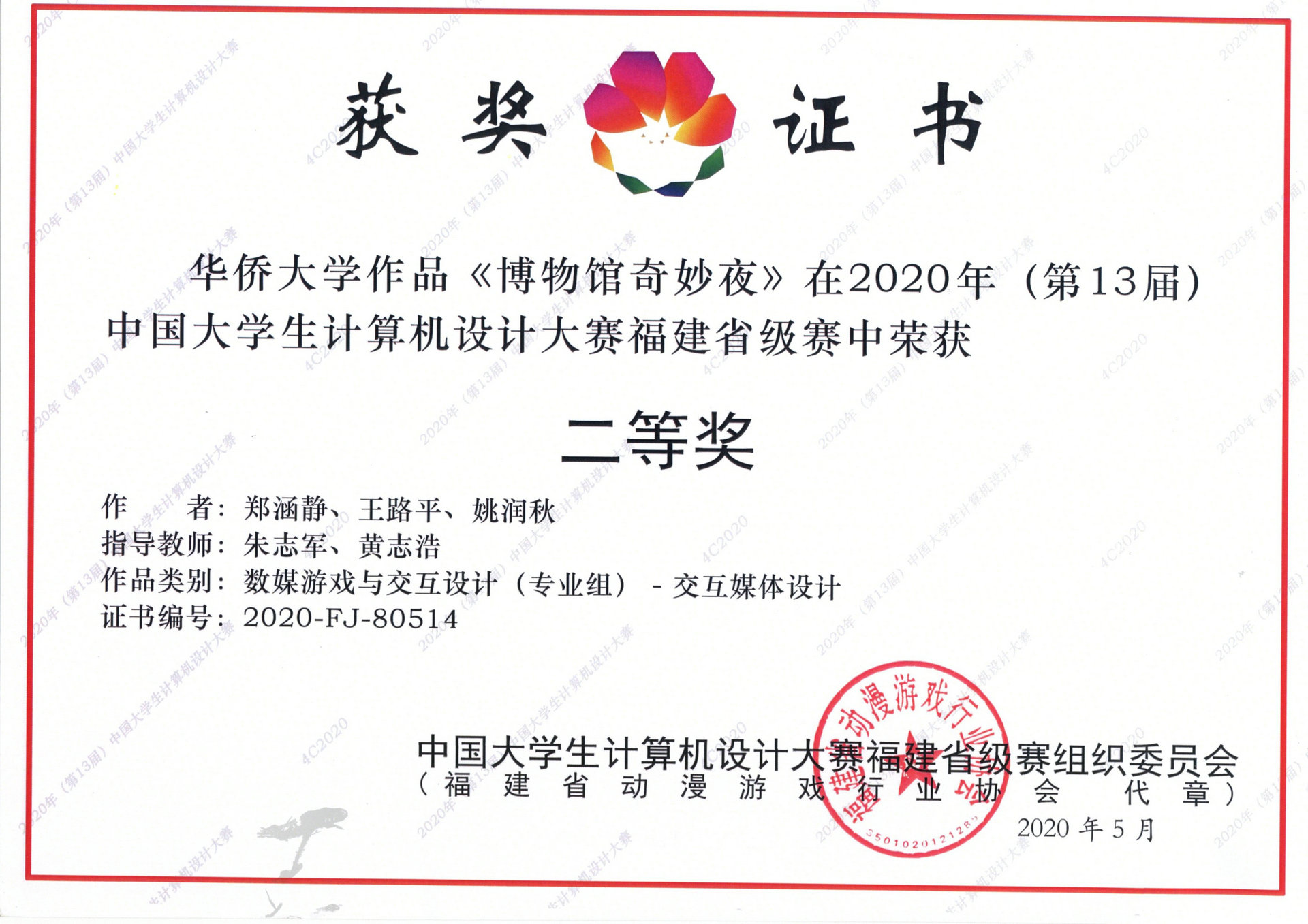 - Granted by:教育部中国大学生计算机设计大赛福建省级赛组委会