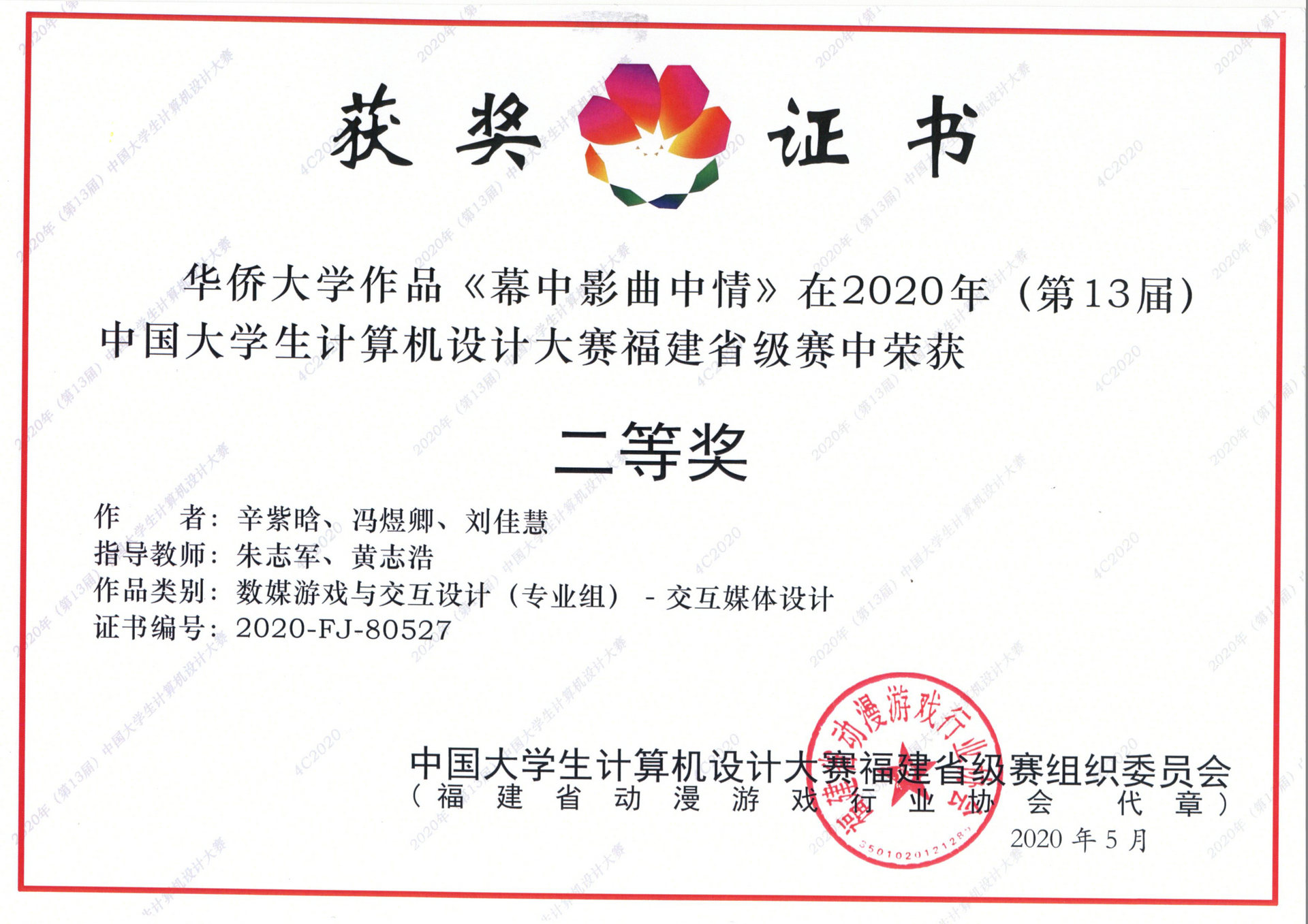 - Granted by:教育部中国大学生计算机设计大赛福建省级赛组委会