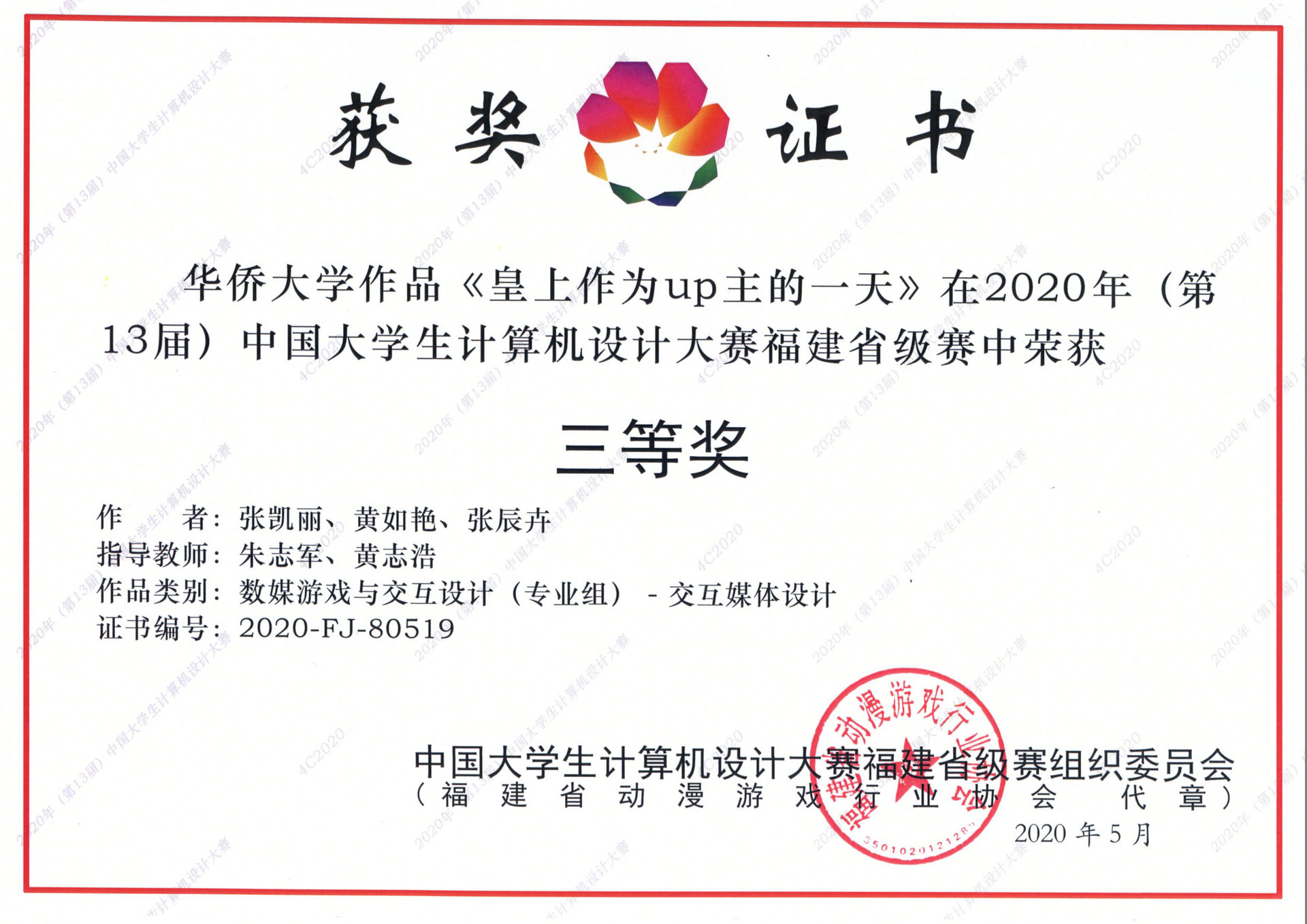 - Granted by:教育部中国大学生计算机设计大赛福建省级赛组委会