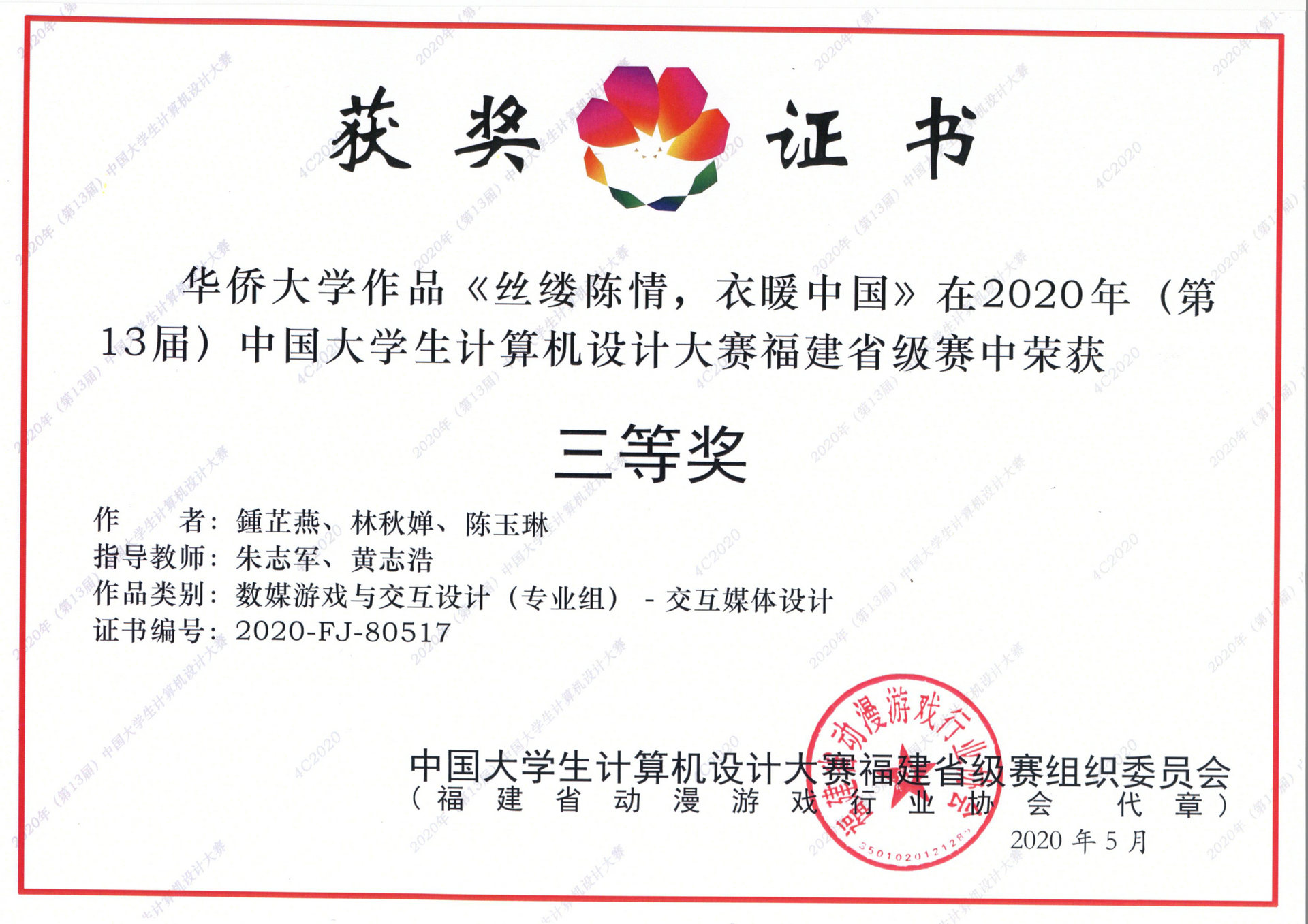 Granted by:教育部中国大学生计算机设计大赛福建省级赛组委会