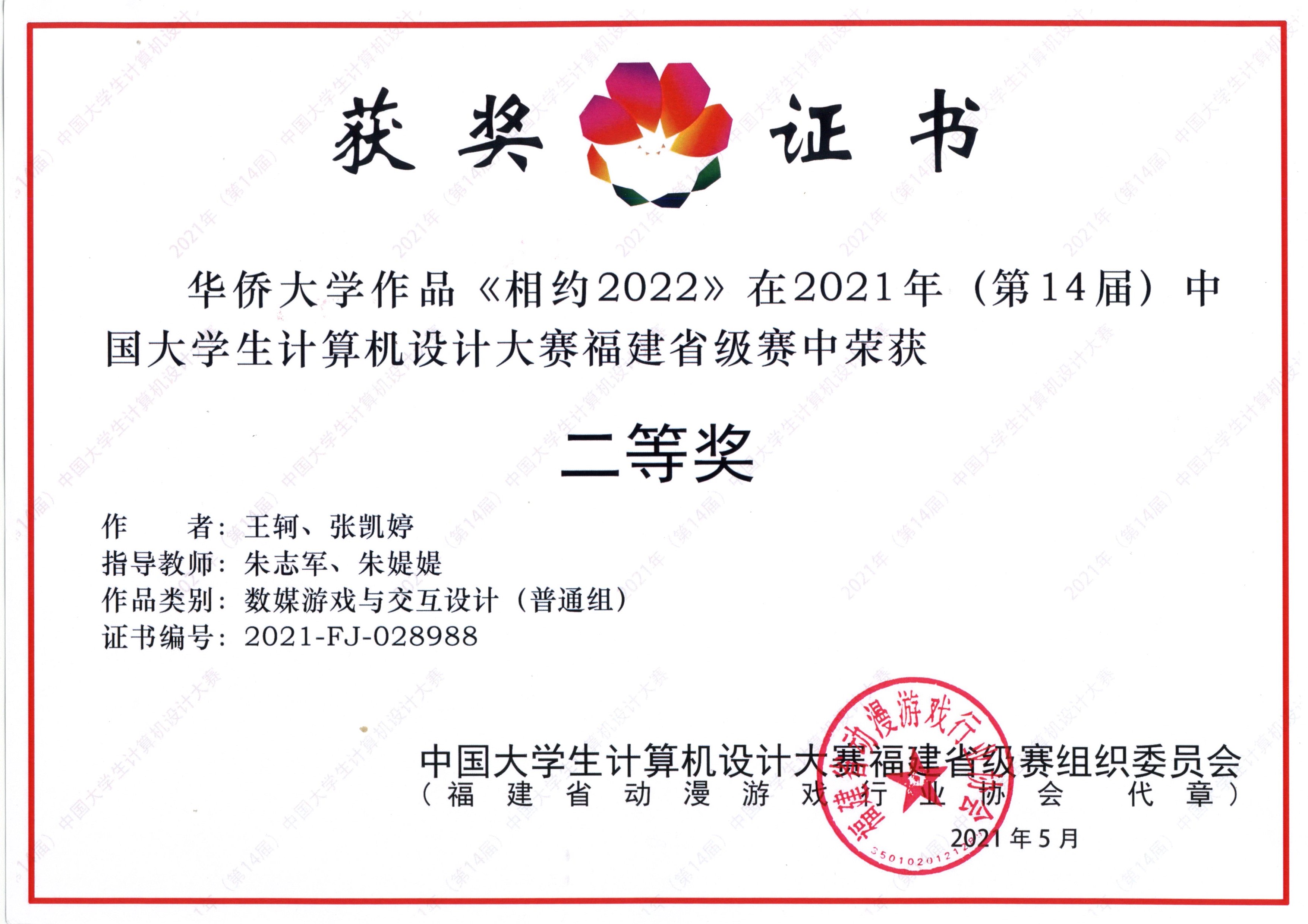 - Granted by:教育部中国大学生计算机设计大赛福建省级赛组委会