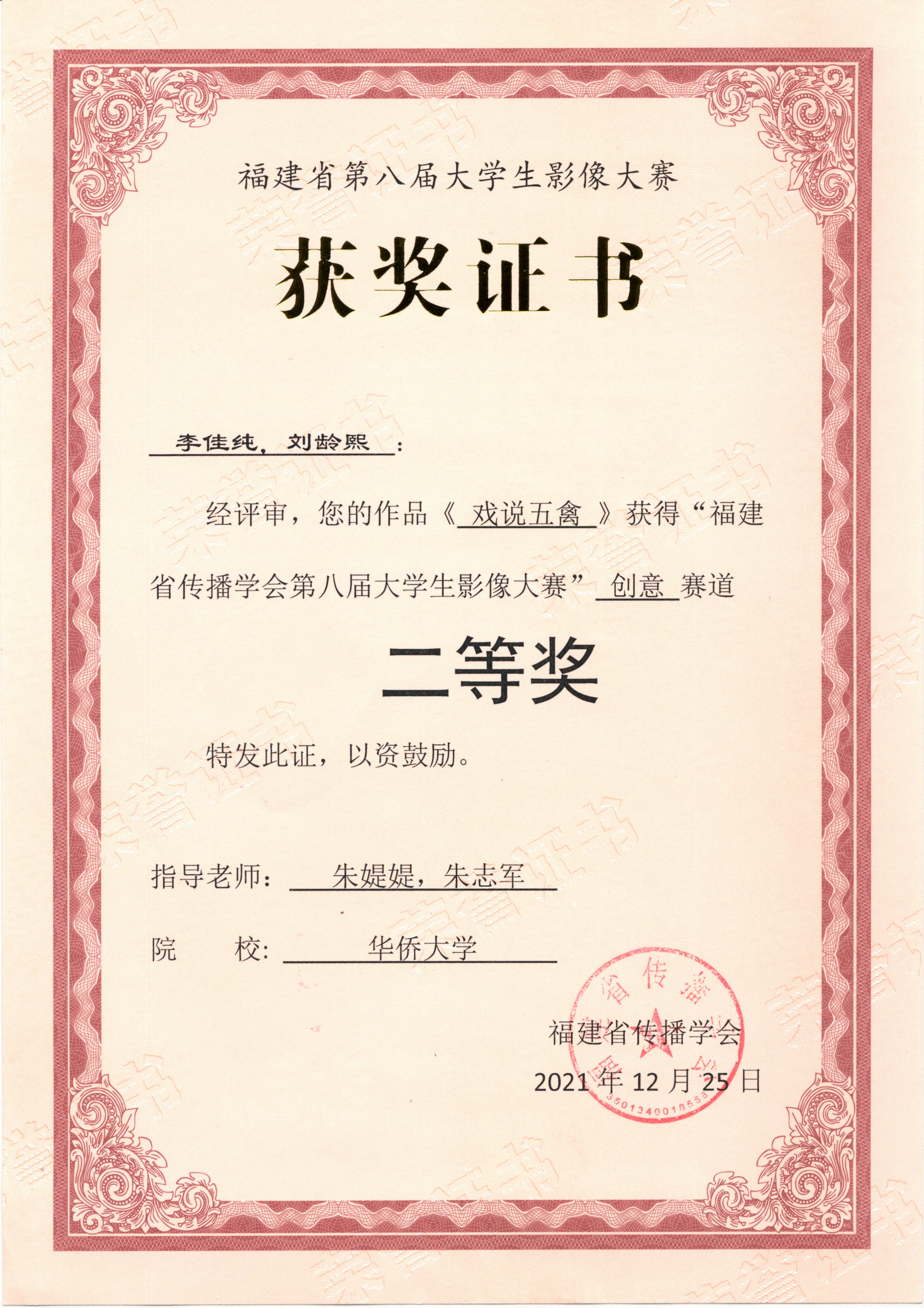 获奖日期:2021-12-25